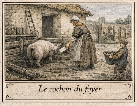 À côté des cultures, les petits élevages jouent un rôle important. Les familles élèvent quelques animaux : volailles, lapins, parfois un cochon ou une chèvre. Ces animaux fournissent œufs, viande occasionnelle, graisse et parfois fumier pour le potager.