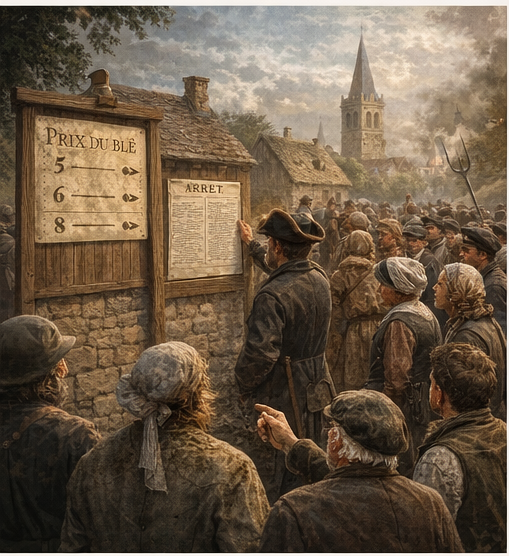 En effet, l’histoire des subsistances en France montre que, même après les grandes famines des XVIIᵉ et début XVIIIᵉ siècles, le spectre des crises alimentaires demeure dans l’esprit des populations tout au long du XVIIIᵉ. Les périodes de récoltes insuffisantes sont fréquemment suivies de hausse des prix, d’insécurité alimentaire et de crainte d’une pénurie qui pourrait devenir plus grave.