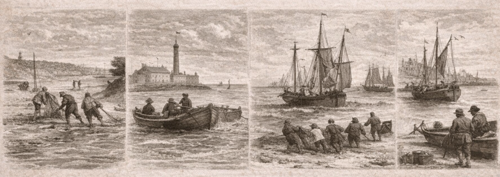 La généalogie Agneray présentée sur ce site ne se limite pas à une suite de noms ou à un arbre familial figé. Elle s’inscrit dans une démarche historique, ancrée dans un territoire précis — le littoral entre Calais et Gravelines — et dans des conditions de vie marquées par la mer, la pêche et les risques qu’elle impose.