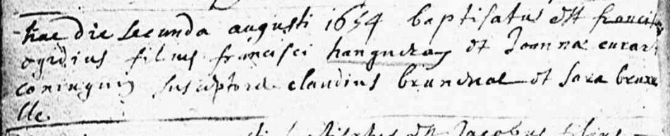 - 1654 : Baptême de son fils François Gilles, dont le prénom « Gilles » est un hommage probable à son grand-père présumé, Gilles Hagnere d’Étaples.