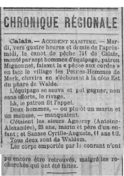 Le littoral calaisien, s’il est une source de vie pour nos ancêtres marins, est aussi le théâtre de tragédies soudaines qui marquent à jamais les mémoires familiales. Le 25 septembre 1888, la communauté des pêcheurs de Waldam et de Calais a payé un lourd tribut à la mer.