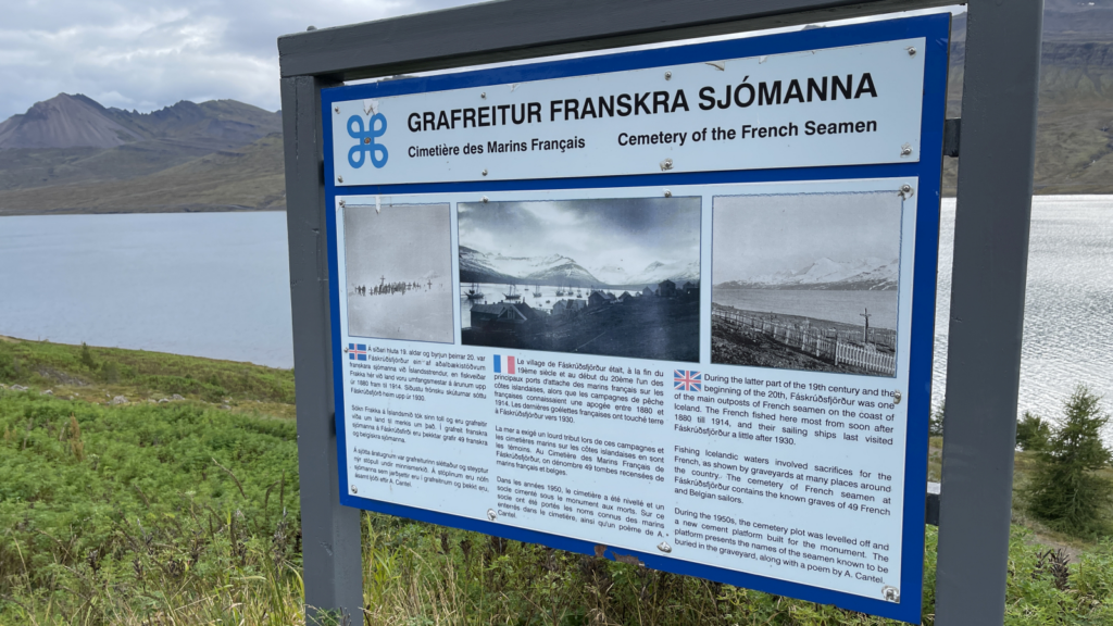 Les panneaux bilingues, visibles dans le village, rappellent au visiteur que ces fjords furent fréquentés durant des décennies par des hommes venus de très loin, souvent au prix de leur vie.