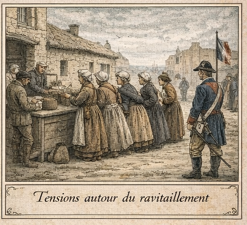 Les difficultés d’approvisionnement, déjà présentes avant 1789, s’aggravent avec les troubles révolutionnaires et les guerres. Dans les villes portuaires et sur le littoral, les pénuries de grains, les hausses de prix et l’irrégularité du travail accentuent la précarité des populations.